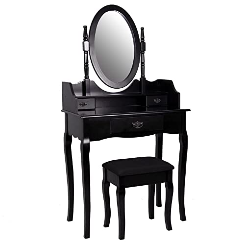 Home Discount Nishano specchiera con Sgabello 3 cassetti Ovale Regolabile Set Camera da Letto Specchio Trucco Cosmetici comò mobili, Nero