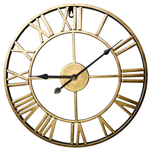 DAN DISCOUNTS 60cm Orologio da Parete Vintage,XXL Orologio da Parete Grandi Orologio da Parete Numeri Romani Orologio da Parete Silenzioso Orologio Parete Metallo - d'oro