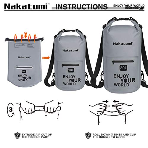 Discovery Adventures Dry Bag Zaino impermeabile Dry Sack 10L 20L con tracolla lunga regolabile e custodia impermeabile IPX8 per kayak, nuoto, campeggio, canoa, barca, pesca, rafting
