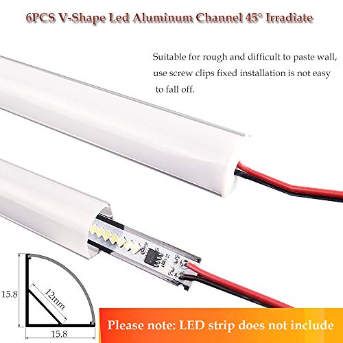 Discra 6PCSx 1 m profilo LED in alluminio profilo a V con copertura, tappi terminali e clip di montaggio per strisce LED