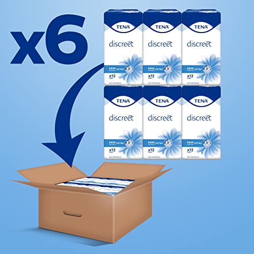 TENA Discreet Extra Pacco Scorta Mensile, Assorbenti per Perdite Urinarie Femminili, Discreti e Confortevoli, 6 Confezioni x 12 Pezzi
