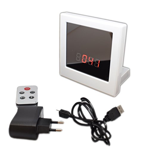 Discreta sorveglianza cammuffato 960P HD 5 MPIXEL spionaggio della Camera Spy Cam Orologio da tavolo sveglia specchio orologio spia digitale con sensore di movimento (motion detection) colore bianco hokatec ec1113