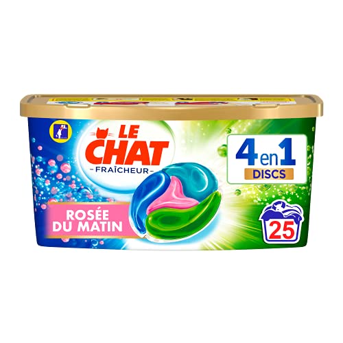 Le Chat Discs Freschezza - Detersivo in capsule - 25 lavaggi (25 dosi 4 in 1) - Profumo Rugiada del Mattino - Detersivo 4 in 1