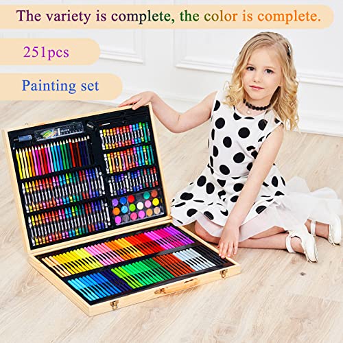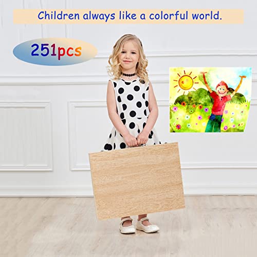 Set da Disegno Portatile Bambini, JasCherry Set Pittura e Disegno con Valigetta, 251 Pezzi Set di Matite Acquerellabili in Scatola di Legno, Regali Ideali per Bambini e Amanti Della Pittura