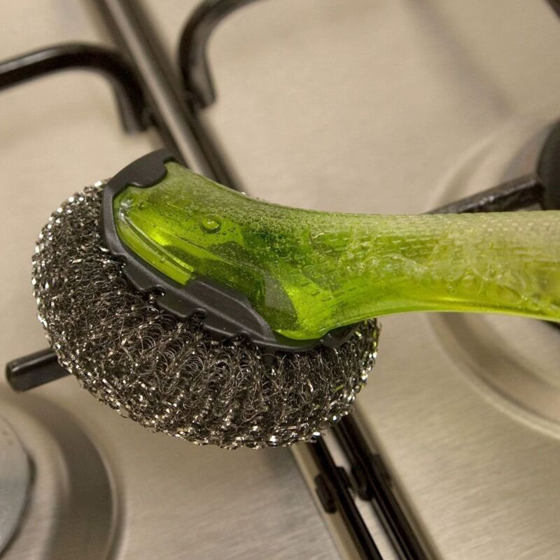Descrizione 2 spugne abrasive in acciaio inox. Si utilizza con il manico dishmatic della stessa gamma. Lavabile e riutilizzabile.