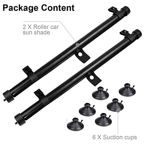 AMPIA COMPATIBILITÀ: La misurazione del parabrezza dell'auto è di 40 * 45 cm e il pacchetto è dotato di ombrelloni da 2 pezzi e ventose da 6 pezzi per l'installazione, è compatibile con la maggior parte dei finestrini dell'auto.