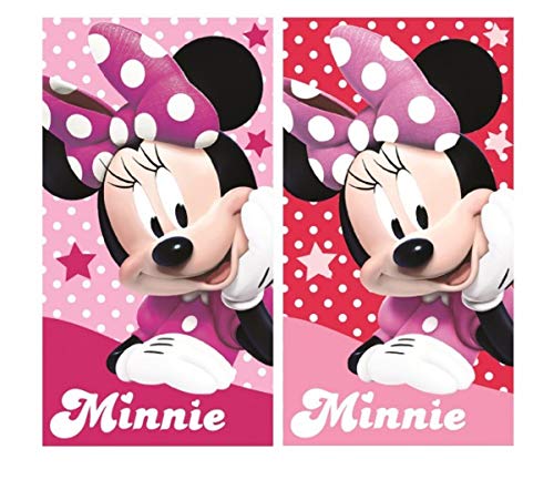 Disney - 2 Asciugamani per Bambini con Minnie Mouse, 100% Cotone, 35 x 65 cm, Idea Regalo per Ragazze (MS01) (Minnie A01)