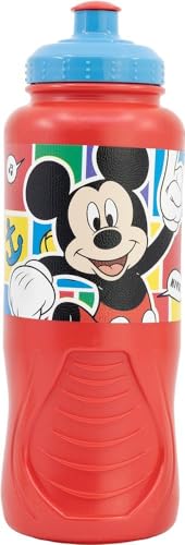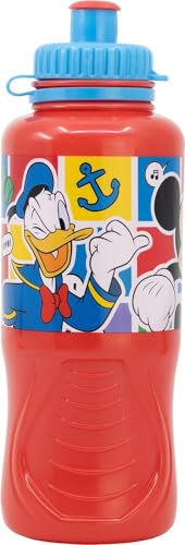 Disney Borraccia rossa per bambini in plastica Mickey Mouse Topolino Pippo Paperino 400 ml con chiusura antigoccia e banda antiscivolo