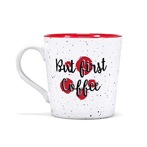 Mentre la parte posteriore della tazza ha le parole, "Ma prima, il caffè"