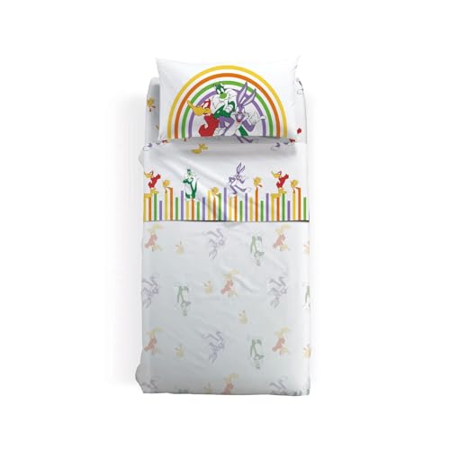 Completo lenzuola per letto singolo dei Looney Tunes in puro cotone. Colora i sogni dei tuoi bambini con le collezioni Warner Bros Caleffi!