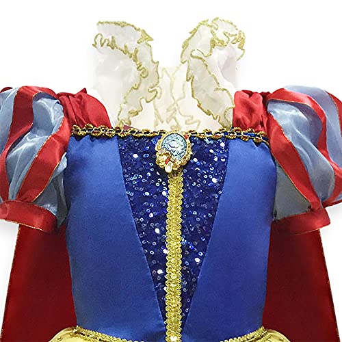 Disney Costume ufficiale bianco come la neve per bambini, bianco come la neve e i sette nani, 1 Pc. Abito decorato senza lacci con finiture dorate, mantello attaccato e spilla gioiello - 3 anni
