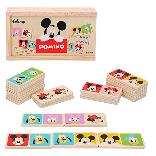 Disney - Domino in legno per bambini, gioco da tavolo per bambini 2 3 4 anni - Gioco di memoria Giochi giocattoli educativi bambini 2 anni - Gioco di stimolazione cognitiva Domino Topolino