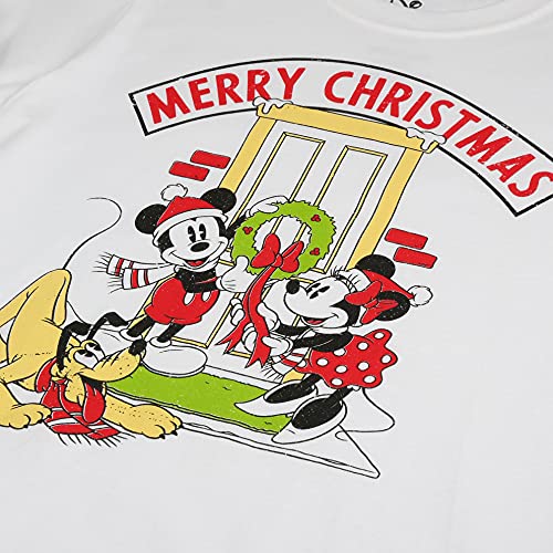 Disney Mickey Merry Xmas T-Shirt, White, Small Donna
