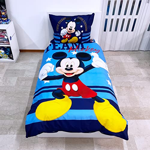 Disney Mickey Mouse Hey 3pezzi Set Letto Singolo COPRIPIUMINO + Federa + Lenzuola c/Angoli Cotone Biancheria Da Letto Bambini