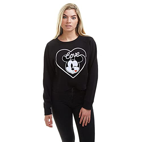 Disney Mickey Mouse Amore Bacio Felpa Cropped, Nero, 46 Donna