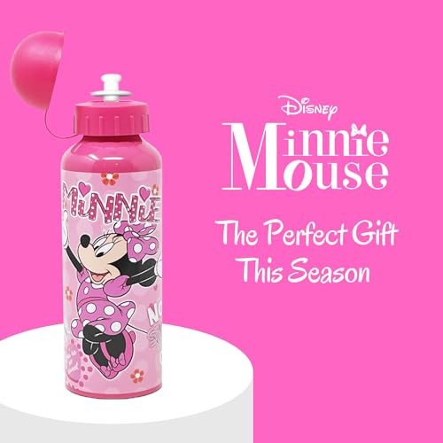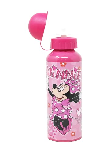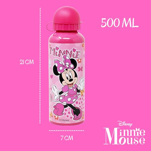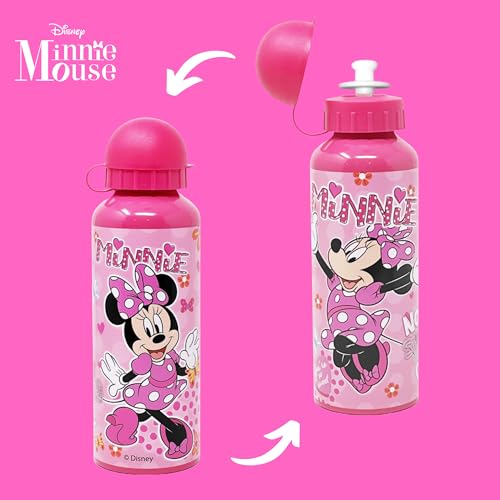 Disney Minnie Mouse Bottiglia Riutilizzabile, Design in Alluminio Resistente, Borraccia per Ragazze, Bottiglia da Viaggio, Capacità 500 ml (Rosa)