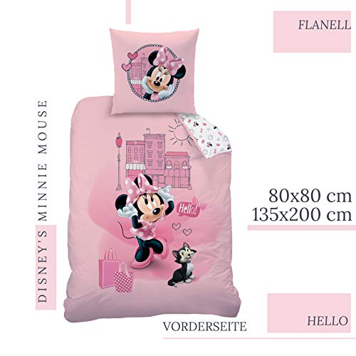 Disney Minnie Mouse Set copripiumino singolo, 135x200 + 80x80 cm, 100% cotone in flanella