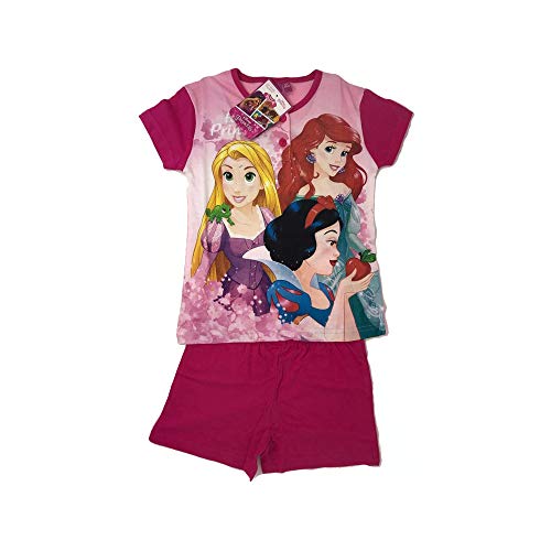 Disney - Pigiama Bambina Mezza Manica e Pantaloncino in Cotone Principesse (Fucsia, 6 Anni (116 cm.))