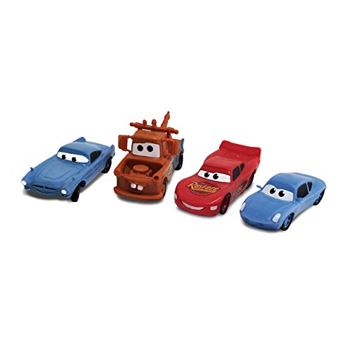 Disney Pixar Cars - Confezione da 4 statuine di Saetta McQueen, Mater, Finn McMissle e Sally