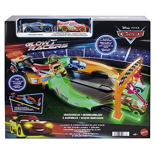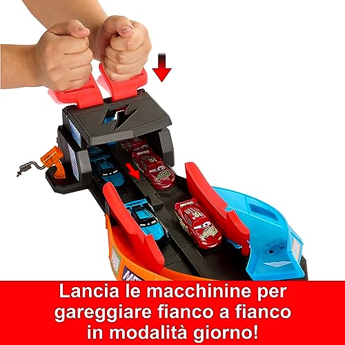 Disney Pixar CARS - Pista Night Racing, playset con pista e due macchinine che brillano al buio, include Saetta McQueen e Jackson Storm, giocattolo per bambini, 4+ anni, HPD80