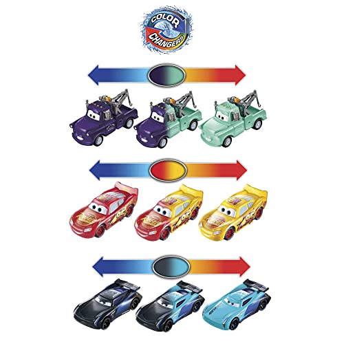 Disney Pixar Cars Saetta McQueen, Mater e Bobby Swift Cambia Colore, Confezione da 3 Cars The Movie Giocattolo per Bambini 3+Anni, GPB03 & Pixar Cars Mack Mini Racers Hauler