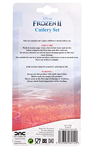Disney Posate in Metallo, Multicolore, 3 Pezzi, Motivo Frozen.
