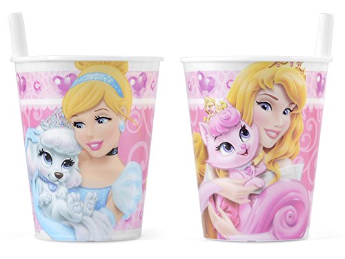 Home Disney Princess Bicchiere con Cannuccia in Polipropilene, Rosa, 400 CC