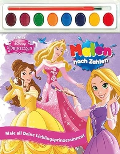 Disney Prinzessin Malen nach Zahlen: Malbuch mit 8 Wasserfarben und Pinsel