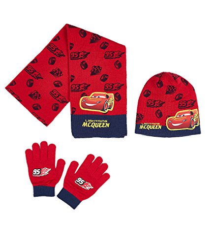 Disney Cars Ragazzi Confezione da 3 Pezzi: Sciarpa, Berretto e Guanti - Rosso