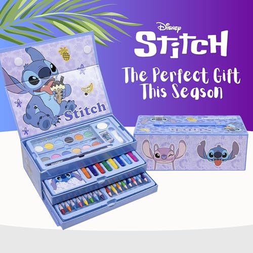 Disney Stitch Set di Cancelleria, Include Matite Colorate, Pennarelli, Acquerelli, Pennello, Spugna, Matita, Gomma, Pastelli Colorati, Taccuino, Valigetta, Set Scuola per Ragazze