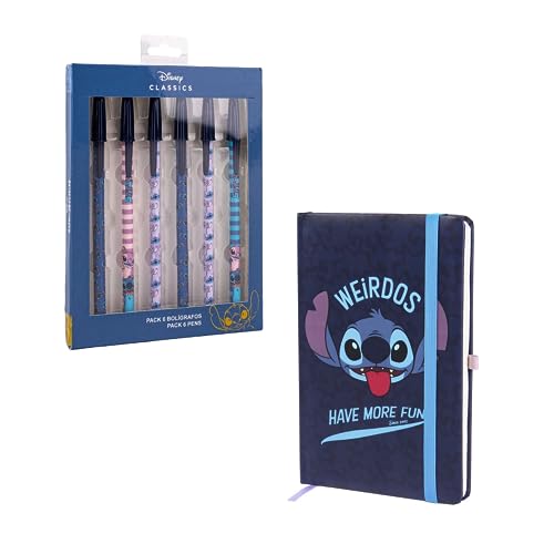 Disney Stitch Set di Cancelleria, Include A5 Quaderno Stitch, 6 Penne Stitch Regalo per Ragazze e Adolescenti