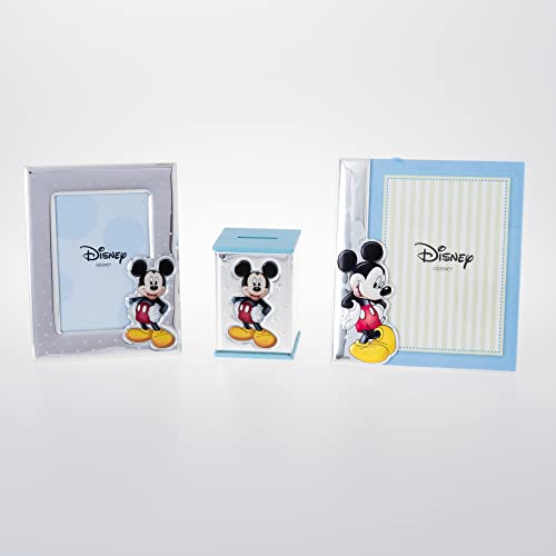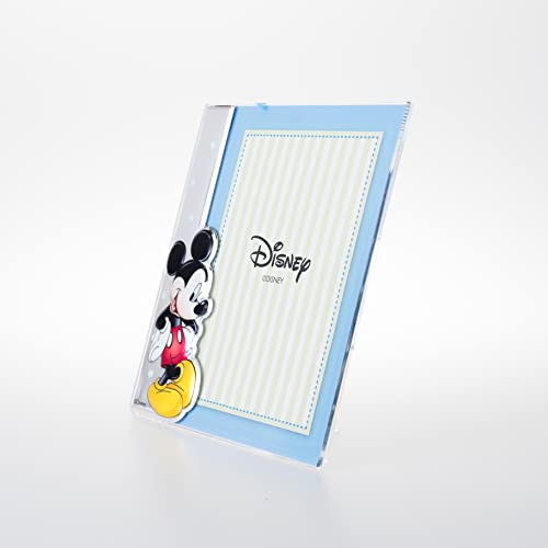 Disney Baby - Topolino Mickey Mouse - Cornice Porta Foto in Argento e Applicazioni 3D a Colori da Tavolo o Comodino per la Cameretta del Bambino perfetta come Idea Regalo Battesimo o Compleanno