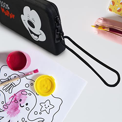 Disney Universal Tech Pouch - Custodia impermeabile con zip in silicone con manico appeso - design di Topolino su sfondo nero