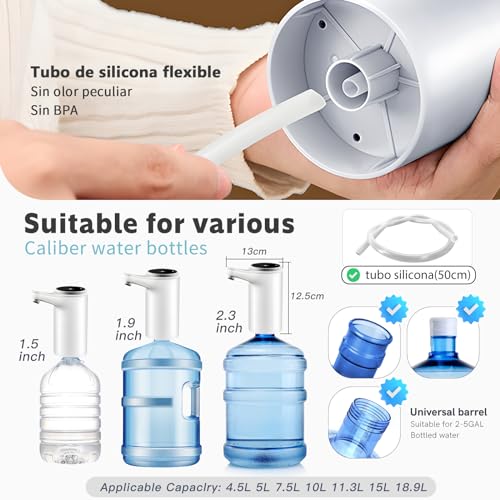 Dispenser d'acqua Pompa automatica, distributore di ricarica USB, rimovibile e conveniente da utilizzare in acqua in bottiglia, portatile per bottiglie da 5,8,10,12,13 e 20 litri..