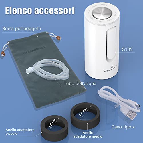 Durata della batteria super lunga: batteria ricaricabile ad alta capacità incorporata, forte resistenza / durevole, la dispenser di acqua KitchenBoss può essere utilizzata per 80-90 giorni dopo la ricarica completa. Cavo di ricarica di tipo C incluso