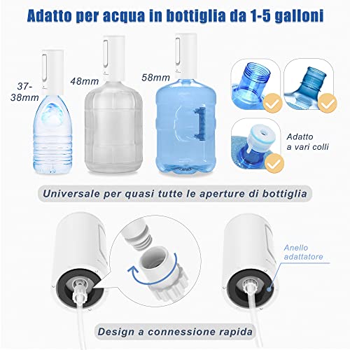 Funzionamento con un tasto: 5 volumi preimpostati: 150 ml/250 ml/350 ml/500 ml/1000 ml, la boccione dell'acqua potabile smetterà automaticamente di pompare quando viene raggiunto il volume dell'acqua;