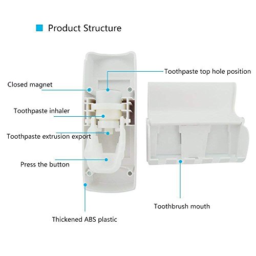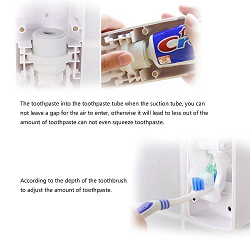 Dispenser Automatico per Dentifricio e 5 Porta-spazzolini da Montare Alla Parete (Bianco)