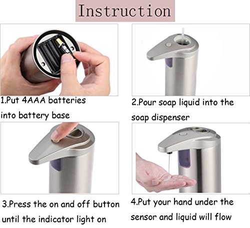 Senza contatto, sensibile e facile da installare: è necessario non più dispensatori di toccare sapone sporco solo bisogno di mettere le mani sotto il sensore e non ha bisogno di stringere la mano più volte, i sensori a raggi infrarossi sensibili in grado di rilevare automaticamente subito (sapone) per voi e la vostra famiglia aiutare lontano da germi, mantenere una vita più sana.
