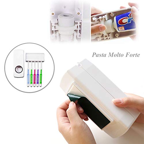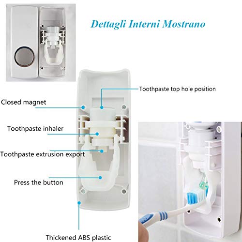 Dispenser automatico unico per dentifricio da montare alla parete, con di porta-spazzolini