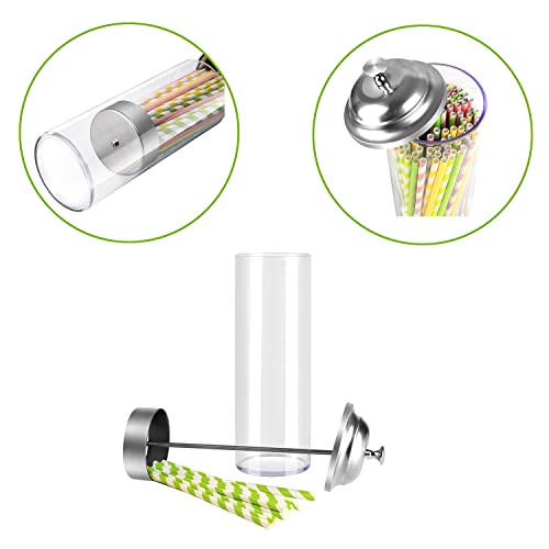 Dispenser di cannuccia in plastica trasparente creativo dispenser - 21 pollici paglietta organizzatore Contaienr con coperchio in acciaio inox per bancone cucina ... (plastica/21 cm)