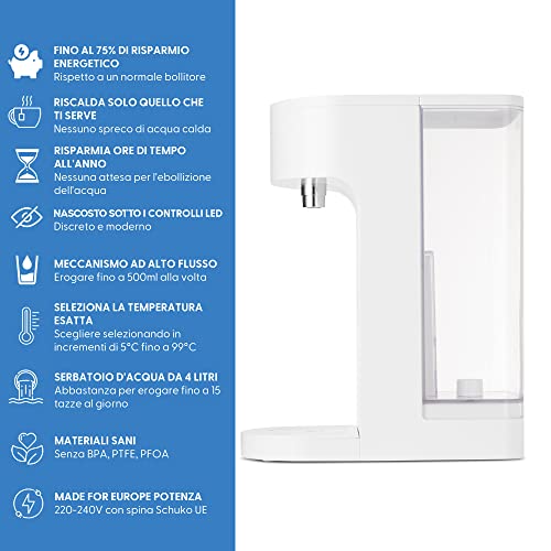 Yum Asia Oyu Dispenser digitale istantaneo di acqua calda con display touch LED "Hidden Under" bianco, capacità 4 litri, Ecoboil, tecnologia InstaHEAT, 220-240V, alimentazione EU