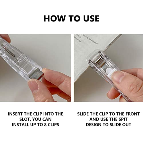Compatto e portatile: il dispenser di graffette per vongole di carta non occupa troppo spazio nella borsa, circa 10 x 0,98 cm, è di dimensioni molto ridotte, portatile e facile da trasportare.