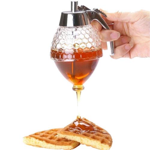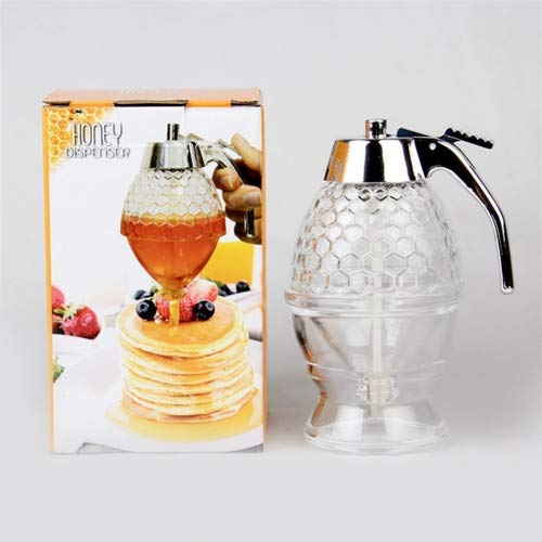 Dispenser per miele, dosatore per miele, con design a nido d'ape, realizzato in acrilico, barattolo con supporto, 200 ml