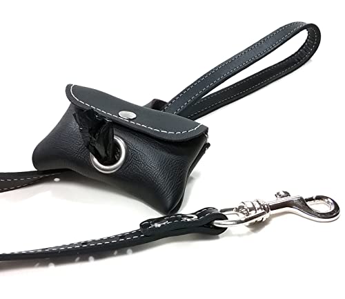Dispenser Sacchetti Bisogni dei Cani, Distributore Lusso per Rotoli Sacchettini Escrementi, Fatto mano in Spagna, Colore Nero, Per un Sacchetto Cacca Pupù, Fissaggio al Guinzaglio o Collare