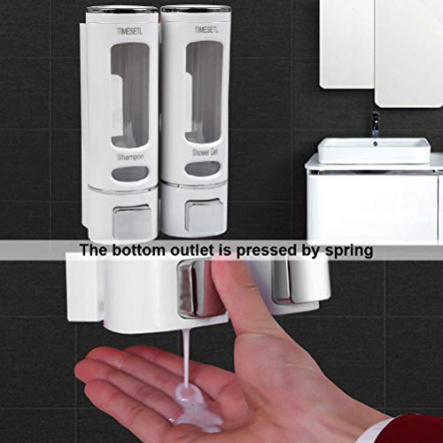 Dispenser Sapone Muro 400ML x 2 TIMESETL Dispenser a Parete Sapone Liquido Dispenser per Doccia Manuale Dispenser Sapone Doppio Dispenser Sapone e Shampoo, Contenitore Gel Doccia Hotel Bagno Toilette