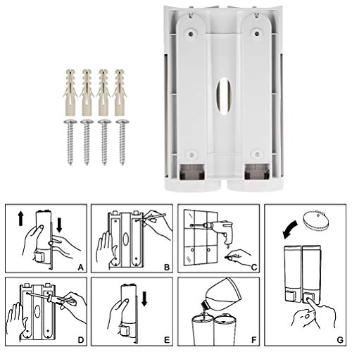 【Installazione Semplice】 Il dispenser di shampoo e disinfettante è facile da installare, i fori per le viti sul retro della staffa vengono utilizzati per l'installazione e il fissaggio e l'installazione è solida e non facile da staccare. Nota: serrare la testa della pompa durante l'installazione per evitare che si allenti.