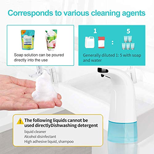Ampia Gamma di Applicazioni: È compatibile con vari liquidi come disinfettante per le mani in schiuma e sapone per le mani, ed è adatto anche per detersivo per piatti, gel doccia e disinfettante. (Si consiglia l'uso di saponi schiumogeni. Per diluire un normale sapone liquido, si consiglia un rapporto acqua / sapone 4: 1). Una scelta saggia per famiglie, uffici, scuole, ristoranti.Nota: non mettere prodotti disinfettanti in gel.