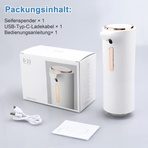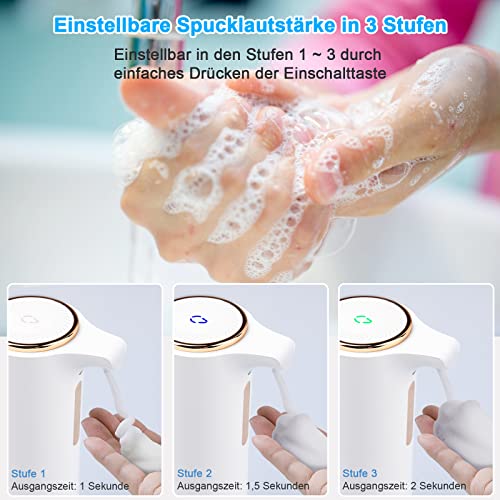 Dispenser Sapone Automatico, Dalugo 300ml USB Ricaricabile Dispenser di Schiuma di Sapone IPX4 Impermeabile con 3 Fasi di Erogazione Bianco