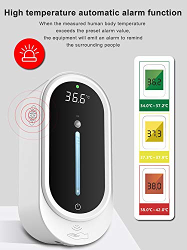 【Dispenser di disinfettante per le mani con termometro】 Il sensore di temperatura e l'uscita del liquido sono progettati nel loro insieme. Hai solo bisogno di allineare la sonda del termometro e l'uscita del liquido con il palmo della mano. Allo stesso tempo, può rilevare la temperatura e rilasciare automaticamente il disinfettante per le mani senza toccare la pelle. Riduce efficacemente la diffusione dei batteri.