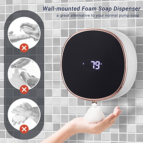 Dispenser di Sapone Automatico con Sensore,Parete Batteria 280 ml USB Ricaricabile con Rilevamento Automatico in Schiuma Touchless Dispenser 2000mAh per Bagno Cucina Ufficio Scuola(Bianco)